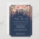 "Navy Fringe Rose Gold Blush Pink Floral Baby Shower Einladung." Schöne Aquarellfarben-Blume in Rosa mit goldfarbenem Glitzer und Aquarellfolien über einen Rand von Rose Gold Glitzer und funkelnden Juwelen. Der blaue Hintergrund kann geändert werden. Design erstellt von Audrey Jeanne Roberts, international lizenzierter Künstler und Designer. Die Rückseite ist ein ganz über Glitzer-Look mit Rose rosa. Urheberrecht.