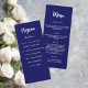 Programm- und Menükarte. Personalisieren Sie Ihren Namen, das Datum und das Menü und fügen Sie es hinzu. Navy blauer Hintergrund, weißer Text.