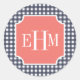 Navy Gingham Runder Aufkleber