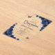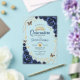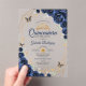 Navy blue gold Quinceanera celebration acrylic invitation. Features, script font, gold butterflies, watercolor roses and tiara. Perfect for an elegant princess style glam celebration. Personalize with your own details. Stylish transparent or frosted acrylic invitations.