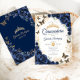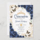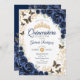 Navy, gold and white Quinceanera celebration invitation. Features, script font, gold butterflies, watercolor roses and tiara. Perfect for an elegant princess style glam celebration. Personalize with your own details. Printed Zazzle invitations or instant download digital printable template.