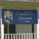 Dieses Banner der Klasse 2025 mit goldenen Streifen und Rahmen rund um das Foto des Absolventen und marineblau Hintergrund.