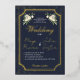Navy Gold Glitter White Floral Photo Wedding Folieneinladung