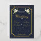 The back showcases a beloved couple's photo framed by the same sophisticated navy, gold glitter, and white floral design, allowing you to personalize with a cherished memory. This elegant and glamorous invitation is perfect for formal, black-tie, New Year's Eve, or winter weddings, offering both essential information and a personal touch.