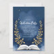Navy Gold Laurel Book Graduation Party Foto Einladung