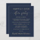 Günstige marineblaue Hochzeitsempfehlung. Die Vorderseite zeigt "Happily Ever After Party" in einer Mischung aus einfacher Goldtypografie und einem eleganten Goldskript mit Swashes und Ihren Namen in einem signaturähnlichen Skript. Auf der anderen Seite, fügen Sie Ihre Hochzeitwebsite-Adresse, um einen QR-Code für Gäste zu scannen, um mit Ihren Hochzeit-Fotos, alle Einzelheiten und UAWG online behalten, und fügen Sie Ihre Vornamen und Hochzeit und Empfang Daten.