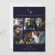 Navy Blue & Fake Gold Simple Classic 4 Multi Photos Collage Save the Date Card with Envelope.