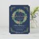 Navy Gold Watercolor Holly Wreath Brautparty Einladung