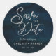 Navy Luster Silber Wasserfarbe Save the Date Runder Aufkleber