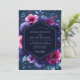 Experience a dramatic and moody ambiance with this artistic floral design. A deep navy background sets the stage for a luminous bouquet of magenta, fuchsia, and purple anemones. Touches of teal foliage add depth to the opulent and romantic arrangement. This elegant botanical composition is perfect for an evening affair.