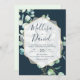 Navy & Mint Greenery mit geometrischem Rahmen Einladung