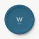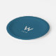 Trendy Personal Party Papier Teller mit marinem Hintergrund, großen zentrierten Monogramm und dazugehörigem Namen. Saubere, einfache minimalistische Typografie. Vollständig personalisierbar.