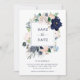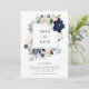 Diese stilvolle Hochzeit speichern die Dattelkarte mit einem Rahmen von marineblau, hellblau und rot-rosa Aquarellfarben mit grünen und neutralen beigen Blätter. Auf der Rückseite der Karte befinden sich die blau-weißen Streifen.