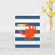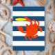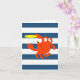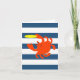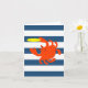 Diese leere Notizkarte zeigt einige nautische Whimsy mit Marinebänder und eine Krabbe, die einen Sprung für einen hochfliegenden Frisbee macht.