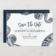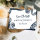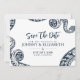 Lass deinen Gästen mit dieser eleganten Oktopus-Save the Date-Karte alles über deine bevorstehende Hochzeit. Das Design umfasst marineblaue, blaue Oktopus-Tentakel, die sich um die Karte wickeln. Die Rückseite des Hauses zeichnet sich durch ein elegantes, weißes Dekorrahmen-Design aus. Kaufen Sie die koordinierenden Hochzeitsartikel zu entsprechen (verkauft separat). Entsprechende Artikel finden Sie in unserer Sammlung 'Navy Nautical Octopus'.