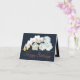 Herrlicher Strauß mit weißen Rosen, weißen Orchideen und einer weißen Torte vor einem marinebürdigen Hintergrund. Der orangefarbene Text verwendet einen attraktiven Schriftzeichen-Schriftart. Die Blume decken die Vorderseite dieser Karte ab, die als Dankeschön-Karte für Hochzeiten, Geburtstagskarte oder jede andere Karte Ihrer Wahl verwendet werden kann. Personalisieren Sie es mit Ihrem Text und/oder Bildern, um es zu einem einzigartigen zu machen!