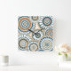Navy Orange Multi-Mandala Design Quadratische Wanduhr