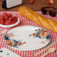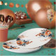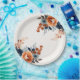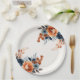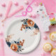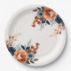 Diese Servietten sind mit blühenden marineblauen und orangefarbenen Blume auf hellorangefarbenem Hintergrund gestaltet.