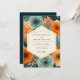 Elicit a sense of opulent romance with this stunning artistic floral design. The composition features lush, painterly chrysanthemums and roses in vibrant paprika orange and muted teal tones. These dramatic blossoms are set against a deep navy background, creating a moody and sophisticated atmosphere. This beautiful botanical arrangement is perfect for a chic and memorable autumn affair.