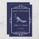 Personalisieren Sie eine einzigartige Hochzeitsankündigung mit einem Navy Peacock Blühte Save the Date. Das Ankündigungsdesign besticht durch einen eleganten Pfau mit Schnörkeln. Zusätzliche Ankündigung Datum freihalten für dieses Design in verschiedenen Farben verfügbar.