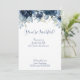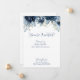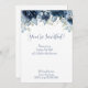 Eine florale Wasserfarbenkarte mit Aquarellmalerei in marineblau und staubblauen Blumen und Grünpflanzen.