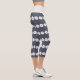 Navy Polka Punkte und große weiße Blume Streifen Capri Leggings. Der Bund ist aus weißem Leder. Dank Creative Fabrica für einige der Elemente in der Gestaltung.