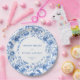 Elevate your reception décor with these navy roses French Toile de Jouy wedding paper plates. Featuring elegant blue roses in navy blue, royal blue, dusty blue, and deep blue tones, this floral design adds timeless charm to bridal showers, rehearsal dinners, and formal celebrations. Perfect for classic, romantic, or vintage-inspired themes, these stylish disposable plates combine beauty and convenience for a coordinated wedding tablescape.