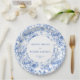Elevate your reception décor with these navy roses French Toile de Jouy wedding paper plates. Featuring elegant blue roses in navy blue, royal blue, dusty blue, and deep blue tones, this floral design adds timeless charm to bridal showers, rehearsal dinners, and formal celebrations. Perfect for classic, romantic, or vintage-inspired themes, these stylish disposable plates combine beauty and convenience for a coordinated wedding tablescape.
