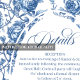 Elevate your celebration stationery with this French Toile de Jouy roses details card in elegant navy blue, royal blue, dusty blue, and deep blue tones. Featuring delicate floral artwork and refined script typography, this enclosure card or insert adds timeless charm to your suite. Perfect for sharing event information in a coordinated, sophisticated style.