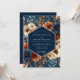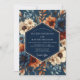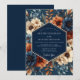 Experience a rich, autumnal mood with this artistic floral design. A deep navy blue backdrop sets the stage for a dramatic bouquet of burnt orange and cream-colored anemones. Dusty blue blossoms and russet foliage complete this lush, painterly composition for a romantic and elegant union.