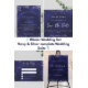 Marineblau, mit Imitaten verziert, silberner Glitzer, Glitzern. Die blaue Farbe ist ungleichmäßig. Personalisieren Sie Ihre Namen und Details und fügen Sie diese hinzu. Zurück: Fügen Sie Ihre Hochzeitswebsite url für Hochzeitsdetails und UAWG.