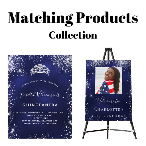 Navy Silver Drehbuch elegant Quinceanera Einladung