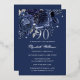 Navy Silver Rose Butterfly 90th Birthday Folieneinladung