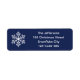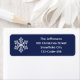 Eine weiße Schneeflocke und Zuhause-Adresse auf marineblau Hintergrund.