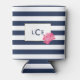 Navy Strip & Pink Peony Monogram Dosenkühler