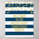 Navy Stripe Gold Confetti Begrüßung Weihnachts-Par Poster