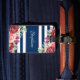 Dieses Gepäckanhänger zeichnet sich durch ein modernes Design aus, mit Marineblau und Imitaten Rose goldenen Streifen mit Aquarellborde Blume und Blattwerk. Personalisieren Sie es mit Ihrem Namen und Ihren Kontaktinformationen.