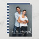 Moderne Foto-Einladung mit weißen und marineblau Streifen Muster mit whimsical Drehbuch. Andere Farben sind verfügbar.