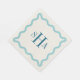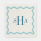 Navy Three Letter Monogram with Aqua Wavy Square Serviette