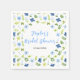 Diese schöne und elegante Serviette besticht durch die blau-blaue Wasserfarbe und die blau-marineblaue Blumen mit Blattwerk. Der Text kombiniert handgeschriebene Skript- und Serif-Schriftart für ein stilvolles und modernes Aussehen. Das ist ideal für ein rustikales Brautparty im Frühling oder Sommer.