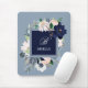 Dieses stilvolle und schöne Mauspad verfügt über einen Rahmen aus marineblau, hellblau und rot rosa nautisch gefärbten Aquarellfarben mit grünen und neutralen beigen Blätter, und Ihren Namen und Monogramm oder Initial in der Mitte. Der Hintergrund des Designs ist staubblau.