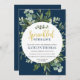 Herrliche marineblaue Einladung mit Eukalyptus- und Grünakzenten.