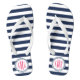 Diese Flip Flops sind im nautischen Stil und perfekt für Ihren Urlaub, Kreuzfahrt oder Hochzeit am Meer. Das Design ist mit klassisch marineblau-weißen Streifen mit einem dreiteiligen Monogramm in heißem Fuchsienrosa versehen, umgeben von einer Seeschiffahrtsabbildungen.