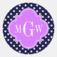 Navy White Polka Dots Lilac Quatrefoil 3 Monogramm Runder Aufkleber