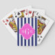 Navy White Strip Hot Pink Quatrefolie 3 Monogramm Spielkarten
