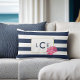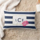 Navy & White Strip mit rosa Peony | Monogramm Lendenkissen