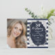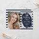 Navy White Stripes Silver Foto 50. Geburtstag Einladung