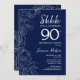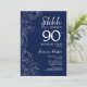 Navy White Überraschung 90. Geburtstag Einladung. Minimalistisches modernes feminines Design mit botanischen Akzenten und Typografie-Script-Schriftart. Einfache florale Einladungskarte perfekt für eine stilvolle weibliche Überraschung am Tag. Gedruckte Zazzle Einladungen oder Sofortdownload digitalen druckbaren Vorlage.