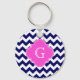 Navy White Zickzack Hot Pink Quatrefoil Monogramm Schlüsselanhänger