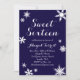 Ein Schneeflocken schmückt diese lustige 16 . Geburtstag Party Einladung auf dunkelblauem Hintergrund. Wenn Sie zusätzliche Koordinierungsaufgaben für Ihre Veranstaltung benötigen, kontaktieren Sie uns bitte unter prettyfancyinvites@gmail.com mit Ihrer Anfrage.